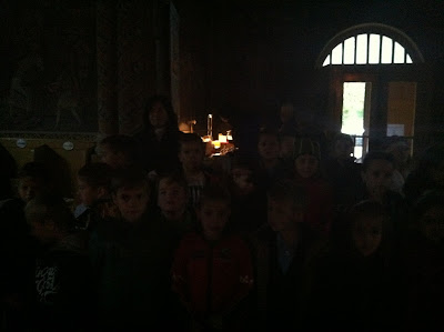 Cu ocazia sarbatorii de azi, elevii catorva clase, alaturi de doamna director adjunct, profesor de religie, Adriana Ciucas si invatatoarele claselor - au asistat la o parte din slujba de la biserica ortodoxa de pe strada Eminescu.